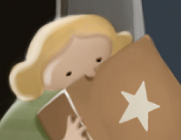 Dunque, partiamo proprio dal numero due: come detto, la cartolina è opera di due persone. Inoltre, la filastrocca ha avuto finora due stesure: dopo averla letta davanti a un pubblico piuttosto esigente, giusto qualche settimana fa, ho realizzato che andava riscritta per intero. Come specificato, inoltre, si tratta di un duplice regalo per Natale e per l’inizio del nuovo anno. E infine: nella meravigliosa illustrazione di Daniel ci sono due personaggi. Osservandoli per bene, ho capito che la filastrocca ha preso forma nella mia mente, da sola, per un solo motivo: raccontare i sogni e le speranze di due miei amici che non se la passano molto bene e che – diciamocela tutta – hanno avuto un anno abbastanza del cappero. Ecco qui allora un particolare dell’illustrazione di Daniel: